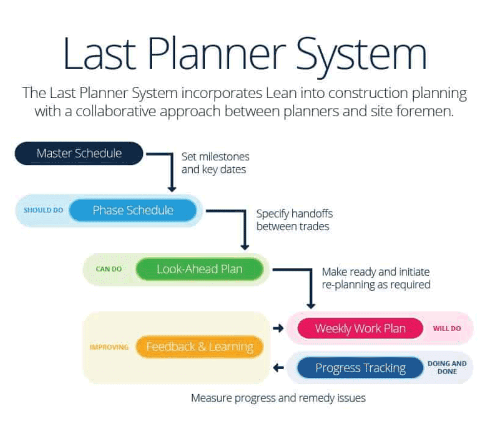 - Look-Ahead Plan: 4-Week Look-Ahead Schedule – includes task breakdown where people (skills, trades and subcontractors), materials, tools & equipment, information and interferences are defined. Execution constraints are identified with an assigned owner and due date. Milestone Planning feeds into the weekly Look-Ahead Schedule as work activities are broken down into task assignments.