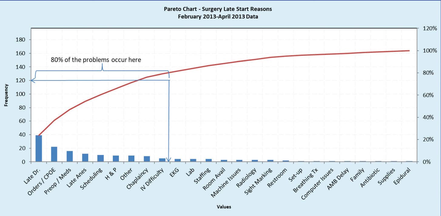 After improving the largest issues identified in the pareto chart, the on-time to schedule reliability rate moved from 37% to 45%. Not earth shattering, but it was a solid start nonetheless. The team promptly understood that like most complex issues, there is never a quick fix. While working their real full-time jobs, the team stayed focused on this problem and continued to resolve issues one-by-one in a prioritized way. Currently the surgery department and team have been performing at a reliability rate of 85% on-time to schedule.